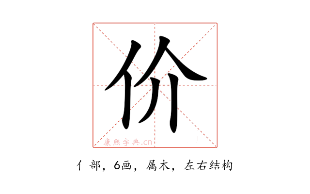 〔价〕字是左右结构,可拆字为“亻、介”,五行属木。