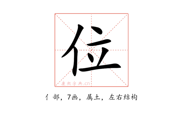 〔位〕字是左右结构,可拆字为“亻、立”,五行属土。