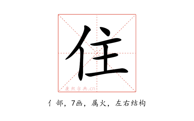 〔住〕字是左右结构,可拆字为“亻、主”,五行属火。