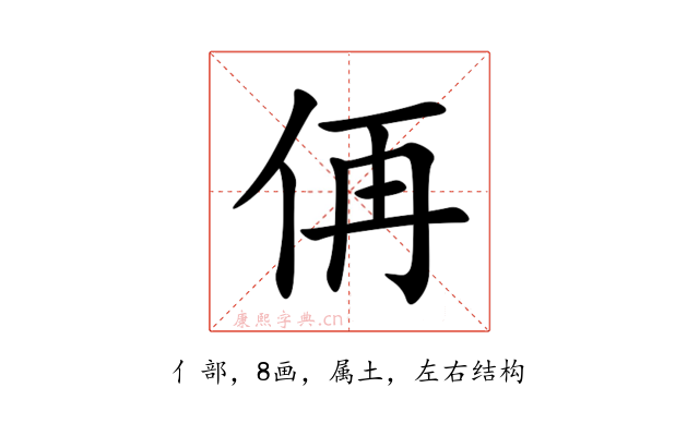 〔侢〕字是左右结构,可拆字为“亻、再”。