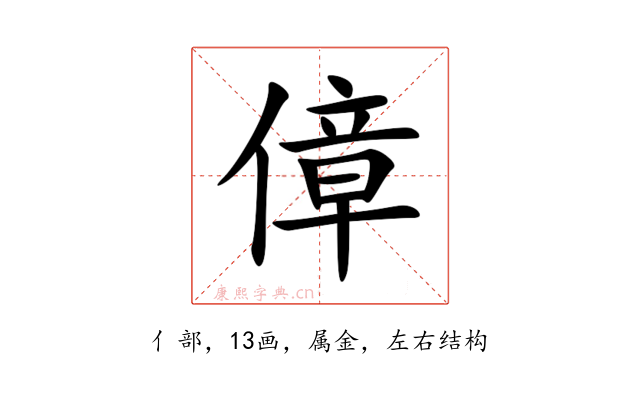 〔傽〕字是左右结构,可拆字为“亻、章”。