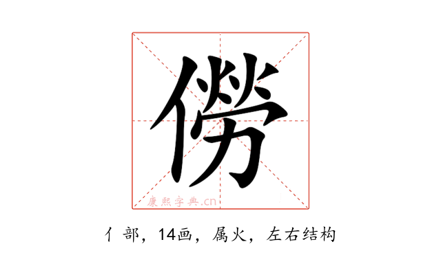 〔僗〕字是左右结构,可拆字为“亻、勞”。