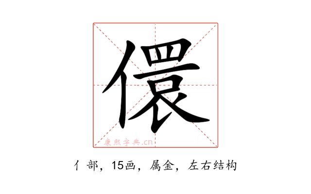 〔儇〕字是左右结构,可拆字为“亻、睘”,五行属金。