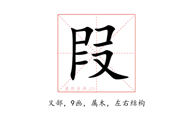 〔叚〕字是左右结构,可拆字为“𡰥、又”,五行属木。