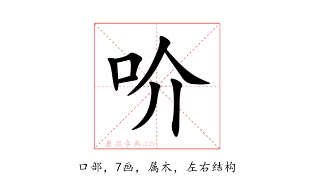 〔吤〕字是左右结构,可拆字为“口、介”。
