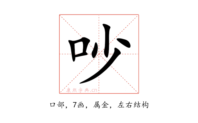 〔吵〕字是左右结构,可拆字为“口、少”,五行属金。