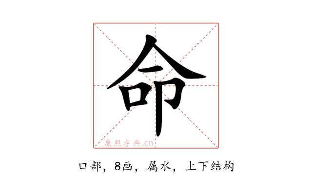 〔命〕字是上下结构,可拆字为“亼、叩”,五行属水。