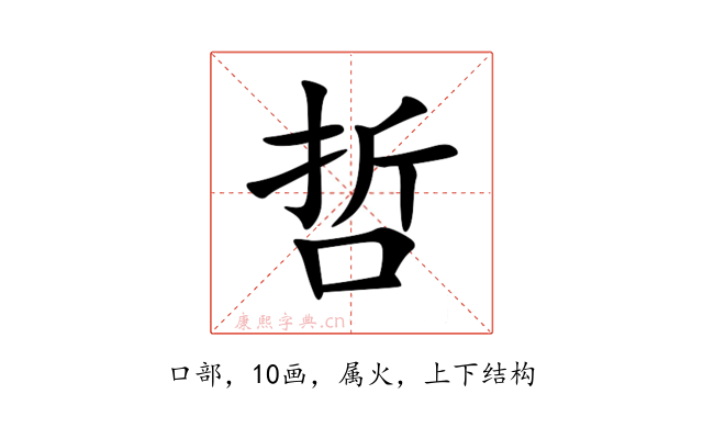 〔哲〕字是上下结构,可拆字为“折、口”,五行属火。