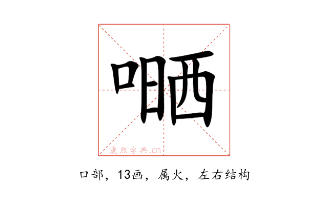 〔嗮〕字是左右结构,可拆字为“口、晒”。