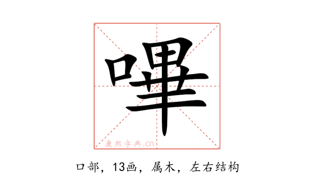 〔嗶〕字是左右结构,可拆字为“口、畢”。
