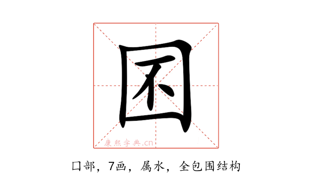 〔囨〕字是全包围结构,可拆字为“囗、不”,五行属-。