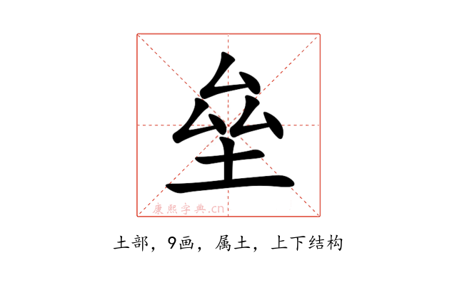 〔垒〕字是上下结构,三叠字 (含三叠字结构),可拆字为“厽、土”,五行属土。