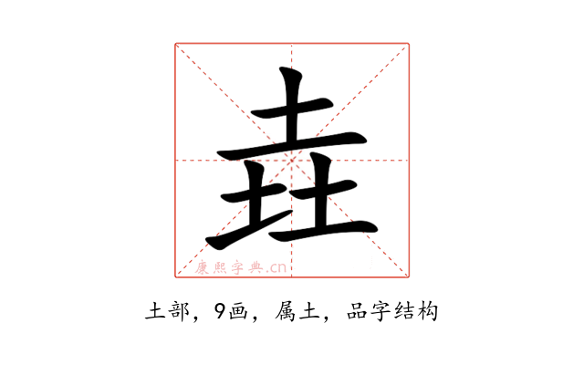 土部 共9画 品字结构 U+579A CJK 基本汉字