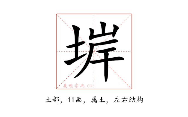 〔堓〕字是左右结构,可拆字为“土、岸”。