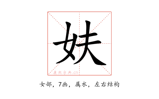 〔妋〕字是左右结构,可拆字为“女、夫”。