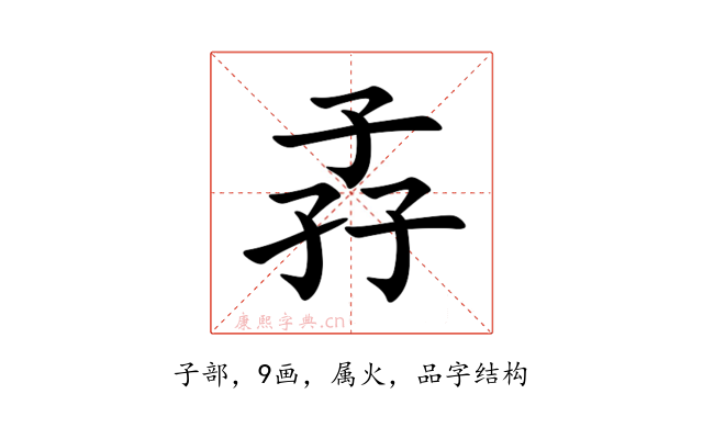〔孨〕字是品字结构,三叠字 (三角三叠字),可拆字为“子、孖”。