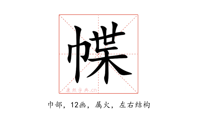 纠错〔幉〕字拼音是(dié),部首是巾部,总笔画是12画。