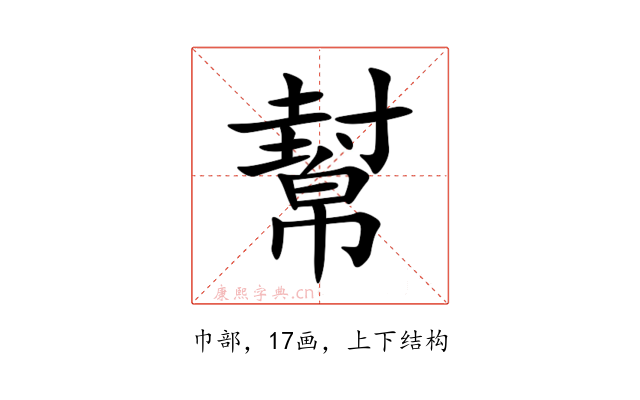 〔幫〕字是上下结构,可拆字为“封、帛”。