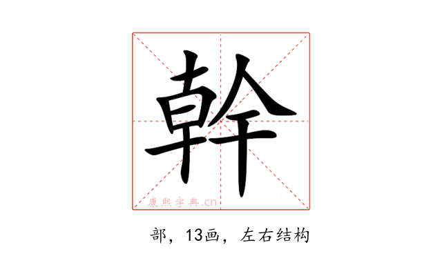 〔幹〕字是左右结构,可拆字为“倝、干”或“龺、𫢉”,五行属木。