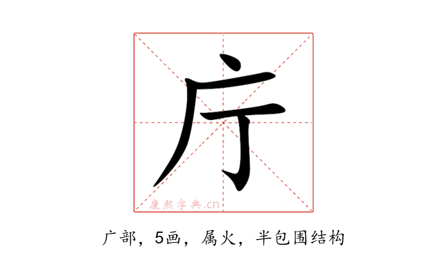 〔庁〕字是半包围结构,可拆字为“广、丁”。