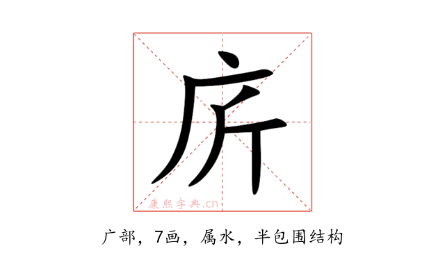 〔庍〕字是半包围结构,可拆字为“广、斤”,五行属-。