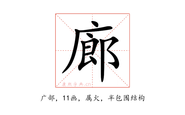 〔廊〕字是半包围结构,可拆字为“广、郎”,五行属火。