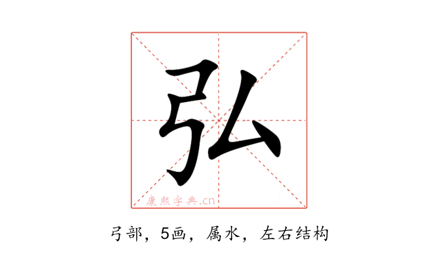 〔弘〕字是左右结构,可拆字为“弓、厶”,五行属水。