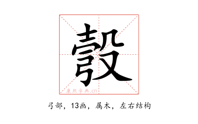 〔彀〕字是左右结构,可拆字为“𣪊、弓”,五行属木。