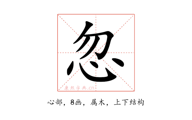 〔忽〕字是上下结构,可拆字为“勿、心”,五行属木。