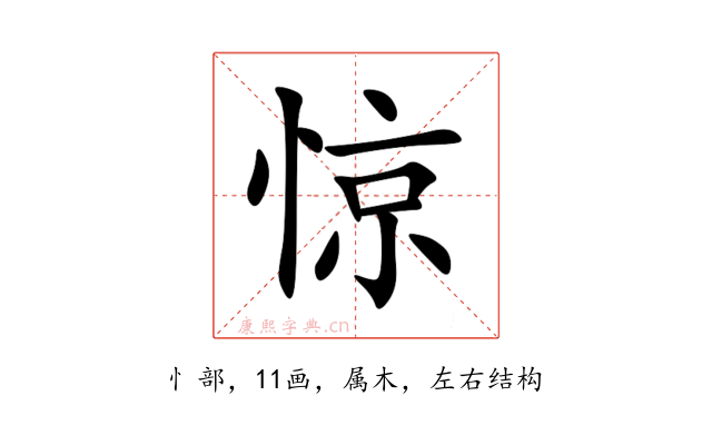 〔惊〕字是左右结构,可拆字为“忄、京”,五行属木。