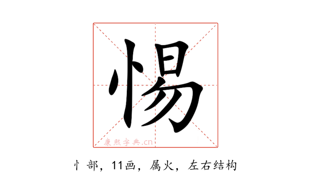 〔惕〕字是左右结构,可拆字为“忄、易”,五行属火。