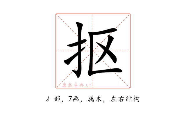 〔抠〕字是左右结构,可拆字为“扌、区”,五行属木。