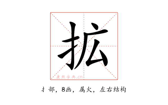 扌部 共8画 左右结构 U+62E1 CJK 基本汉字