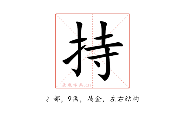 〔持〕字是左右结构,可拆字为“扌、寺”,五行属金。