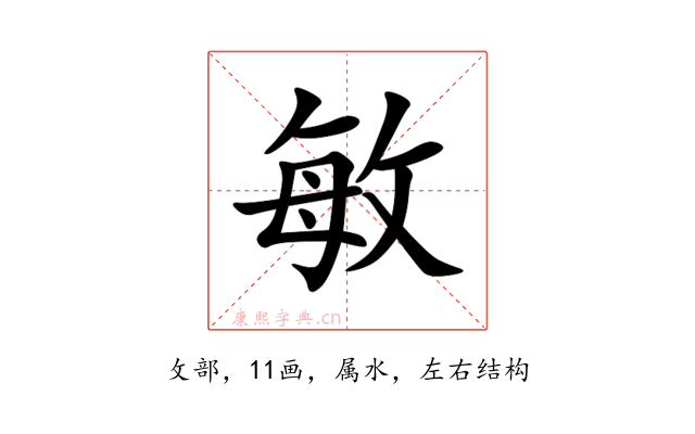 〔敏〕字是左右结构,可拆字为“每、攵”,五行属水。