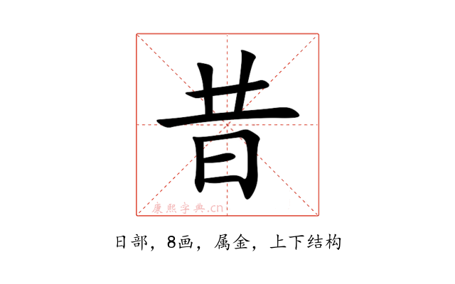 〔昔〕字是上下结构,可拆字为“艹、𣄼”或“龷、日”,五行属金。