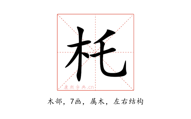 〔杔〕字是左右结构,可拆字为“木、乇”。