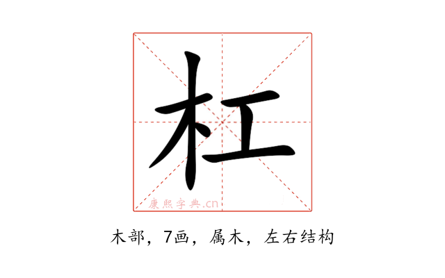 〔杠〕字是左右结构,可拆字为“木、工”,五行属木。