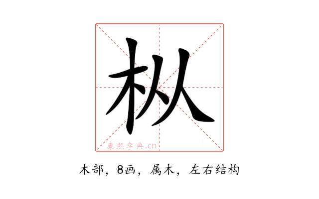 〔枞〕字是左右结构,可拆字为“木、从”,五行属木。