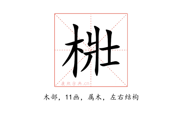 纠错〔梉〕字拼音是(zhuāng),部首是木部,总笔画是11画。