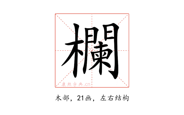 〔欄〕字是左右结构,可拆字为“木、闌”。