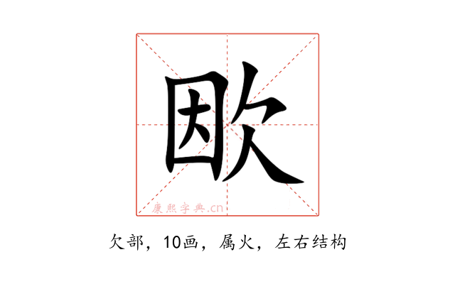 纠错〔欭〕字是多音字,拼音是(yì、yīn),部首是欠部,总笔画是10画。