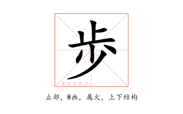 〔歩〕字是上下结构,可拆字为“止、少”。