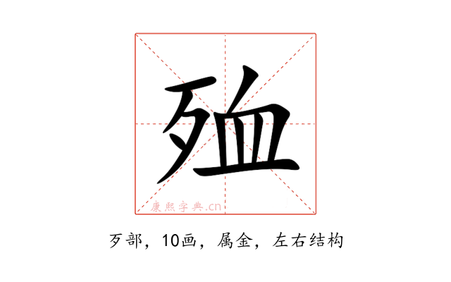 〔殈〕字是左右结构,可拆字为“歹、血”。