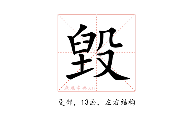 纠错〔毀〕字拼音是(huǐ),部首是殳部,总笔画是13画。