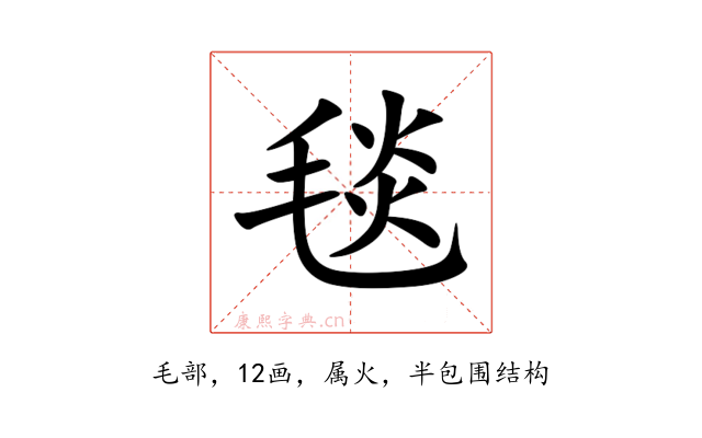 〔毯〕字是半包围结构,可拆字为“毛、炎”,五行属火。