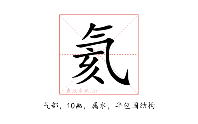 〔氦〕字是半包围结构,可拆字为“气、亥”,五行属水。