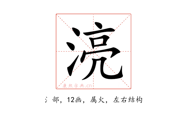 〔湸〕字是左右结构,可拆字为“氵、亮”。