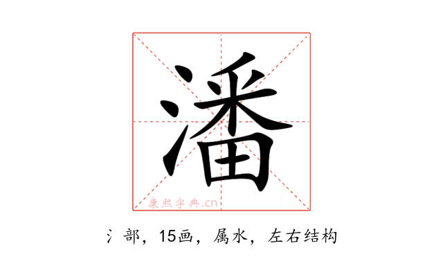 〔潘〕字是左右结构,可拆字为“氵、番”,五行属水。