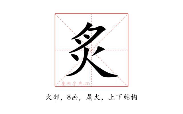 〔炙〕字是上下结构,可拆字为“𱼀、火”,五行属火。